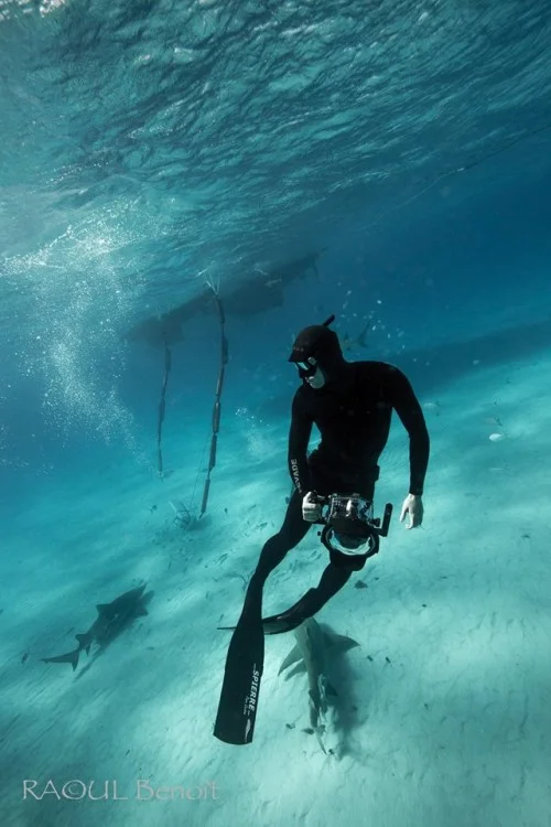 Peter and lemon shark: Courtesy Raoul Benoit